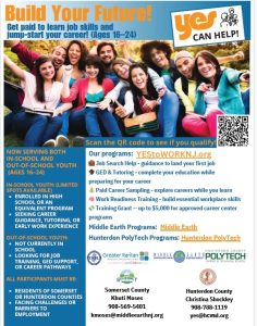 More details are available in this flyer. Hunterdon County businesses may contact Christina Shockley at 908-788-1119 or by email at yes@hcvsd.org. Somerset County businesses may contact Khuti Moses at 908-569-5401 or by email at kmoses@middleearthnj.org.