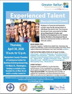 The next quarterly targeted recruitment is set for April 23 at the Hunterdon County Chamber of Commerce in Flemington. Look for details starting later this winter. For more upcoming job fair and career events, see go to the constantly updated calendar on www.theGRWDB.org.