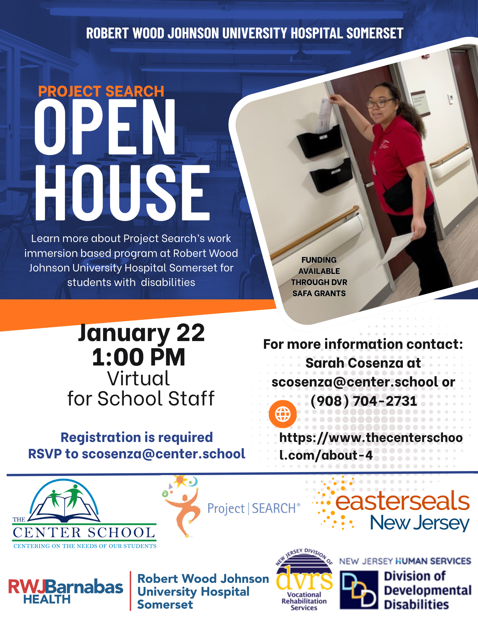 FreeProject Search, which offers an immersion-based program at Robert Wood Johnson University Hospital Somerset for students with disabilities, is hosting a virtual Open House for school staff who would like to learn more about the program.