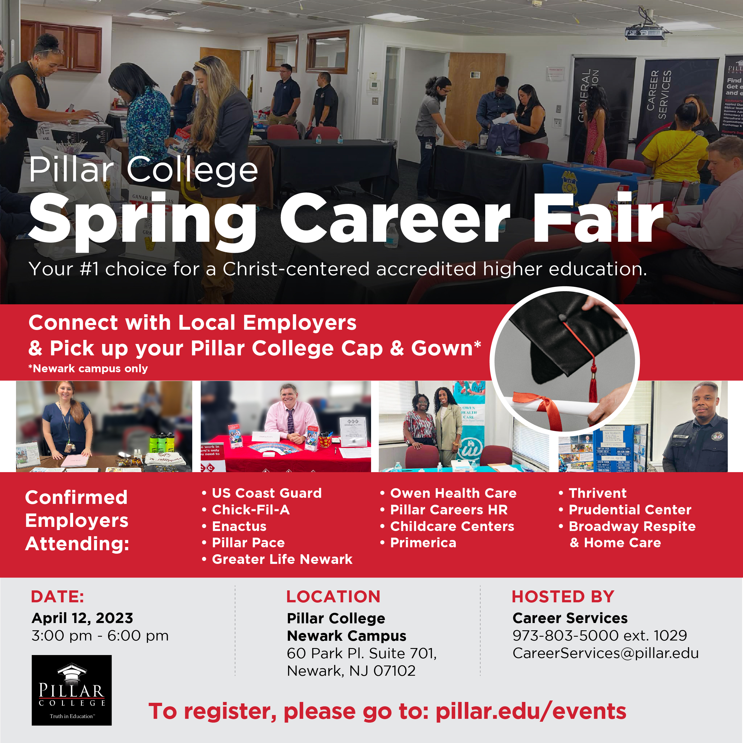The Pillar College Spring Career Fair will be hosted from to 3 to 6 p.m. Wednesday, April 12, at the school’s Newark Campus at 60 Park Place.