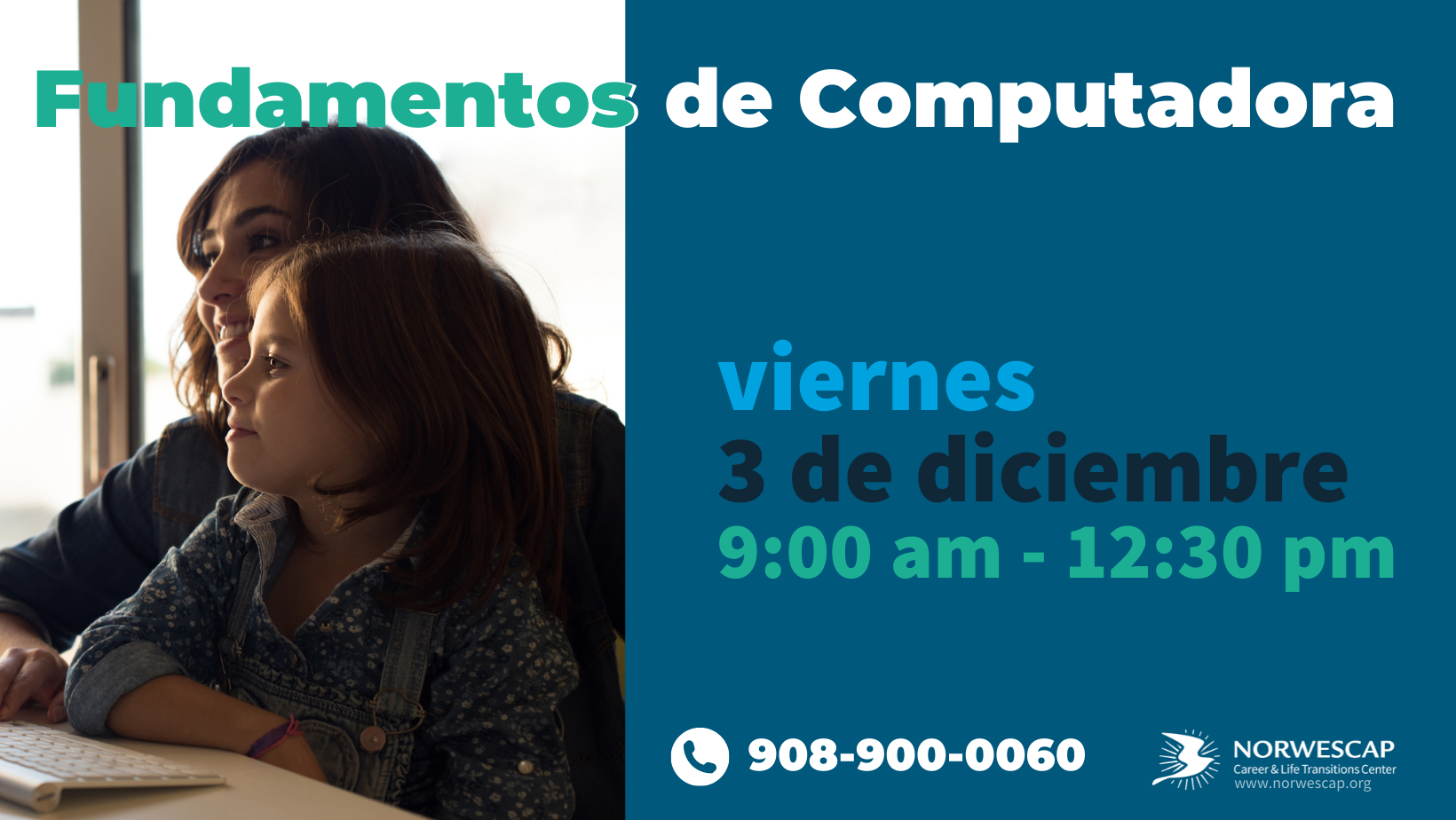Computer Fundamentals is being offered in Spanish by NORWESCAP from 9 a.m. to 12:30 p.m. Friday, Dec. 3, at its North Plainfield location at 170 Watchung Ave. This is a free class.