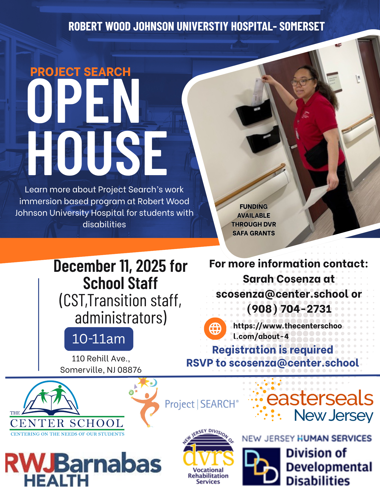 Registration is required to attend either event. To register, email Sarah Cosenza at scosenza@center.school or call 908-704-2731. Cosenza also can provide more information about the Project Search program.