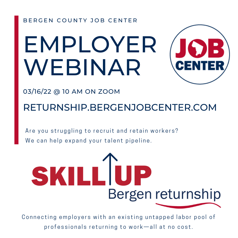 Is your business having recruiting challenges? During a webinar starting at 10 a.m. Wednesday, March 16, learn about one option available through the Bergen County Job Center Returning Program.