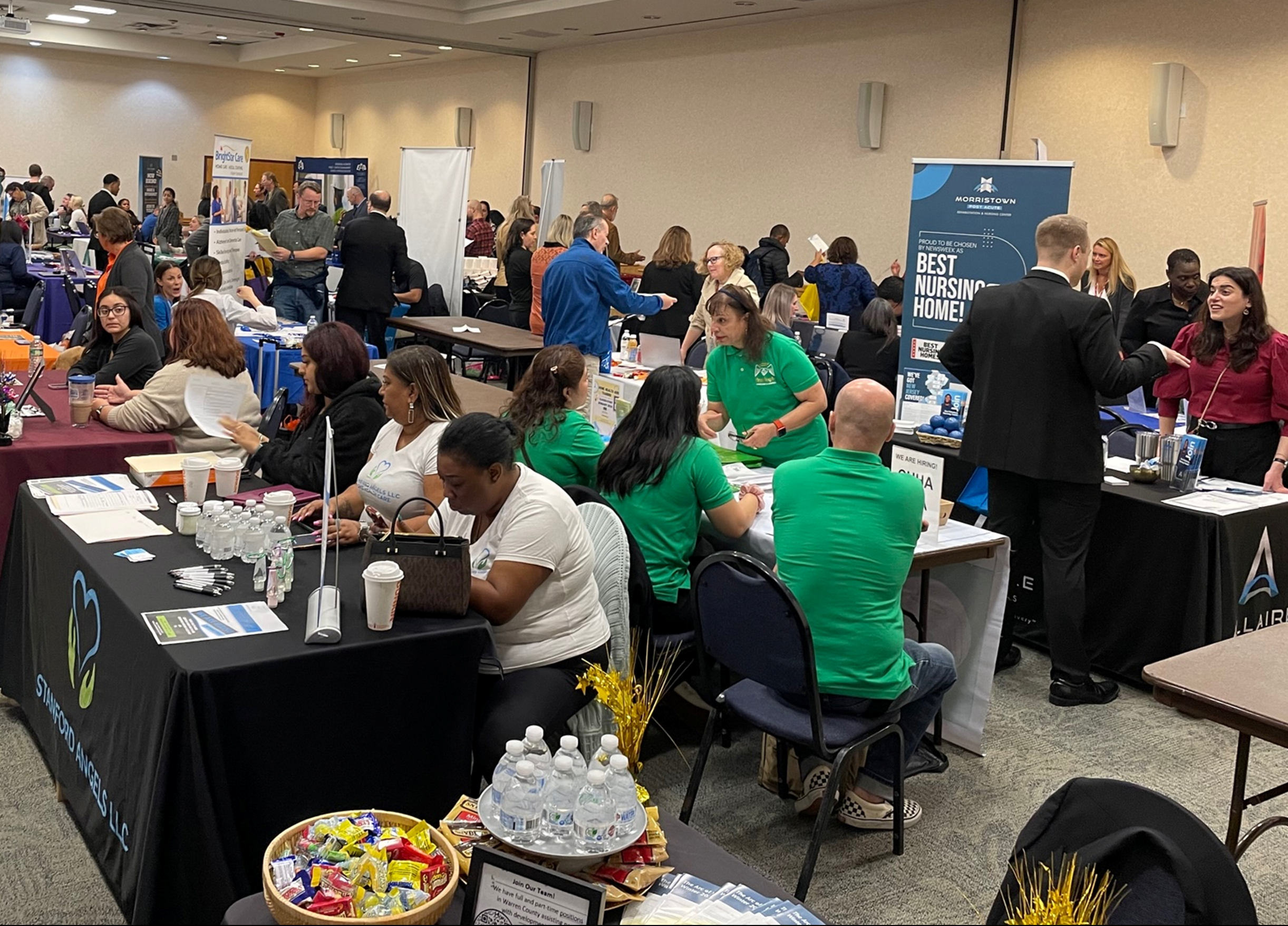 More than 350 job seekers met with representatives of 53 businesses and agencies during the Monday, Oct. 30, Life Sciences and Healthcare Job Fair conducted in the Grand Conference Center at Raritan Valley Community College in Branchburg. The businesses and agencies in attendance from Somerset and Hunterdon counties as well as neighboring counties made this a regional event. Participating businesses included Johnson & Johnson, Eli Lilly, Hunterdon Medical Center, Hackensack Meridian Health, Catalent Pharma Solutions, home health care agencies, senior living facilities, staffing agencies and dozens of others. While many job seekers were from Hunterdon and Somerset Counties, a total of 10 counties in Northern and Central New Jersey as well New York City and Cape May were represented by attendees. The job seekers came armed with their resumes and a positive attitude to share with recruiters, and as they left, many said they forged connections with possible prospects. The event was presented by the New Jersey Department of Labor and Workforce Development’s Industry Partnerships team and the Greater Raritan Workforce Development Board, working with Raritan Valley Community College, Johnson & Johnson, and Ingenus Pharmaceuticals.